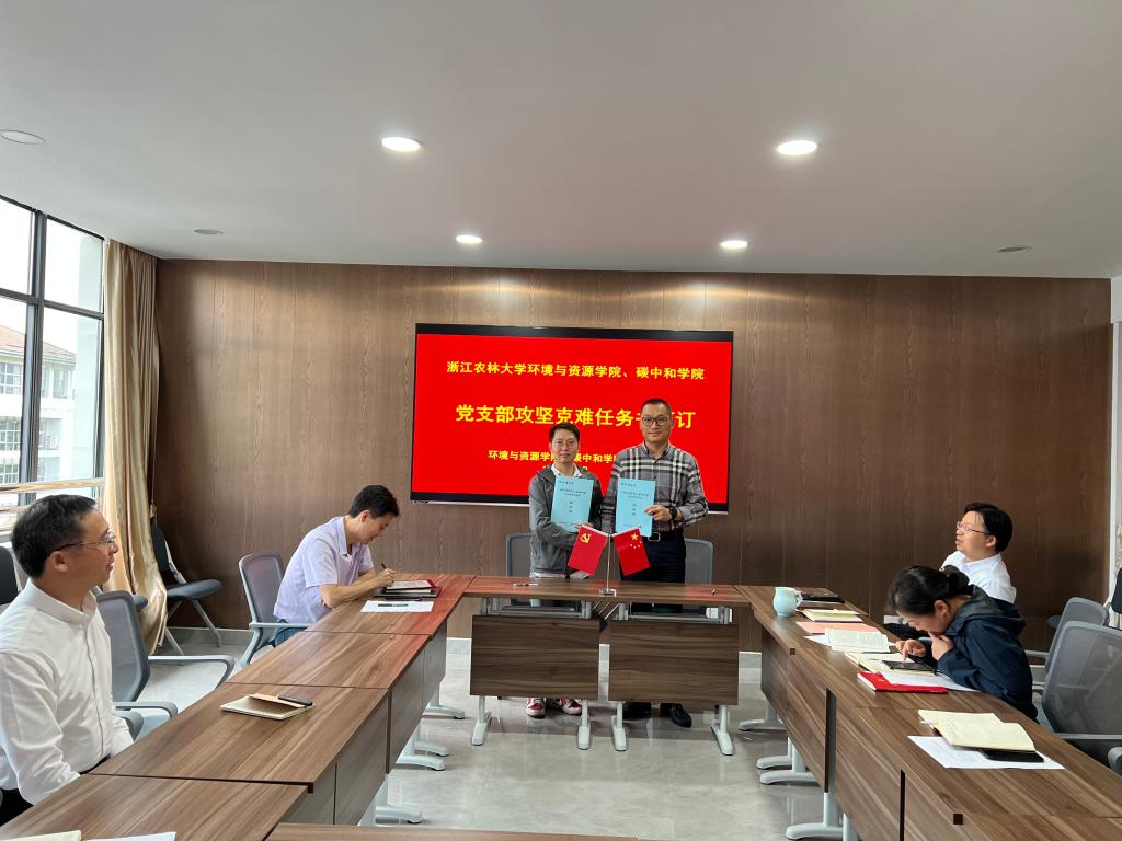 会上,暗网禁区党委分别与森林经理学科教工党支部、农业资源与环境学科教工党支部、环境科学与工程学科教工党支部签订《党支部攻坚克难任务书》,推进竹林碳汇研究工作站、资源利用领域农业专博申报、环境科学与工程学硕点申报等专项工作。